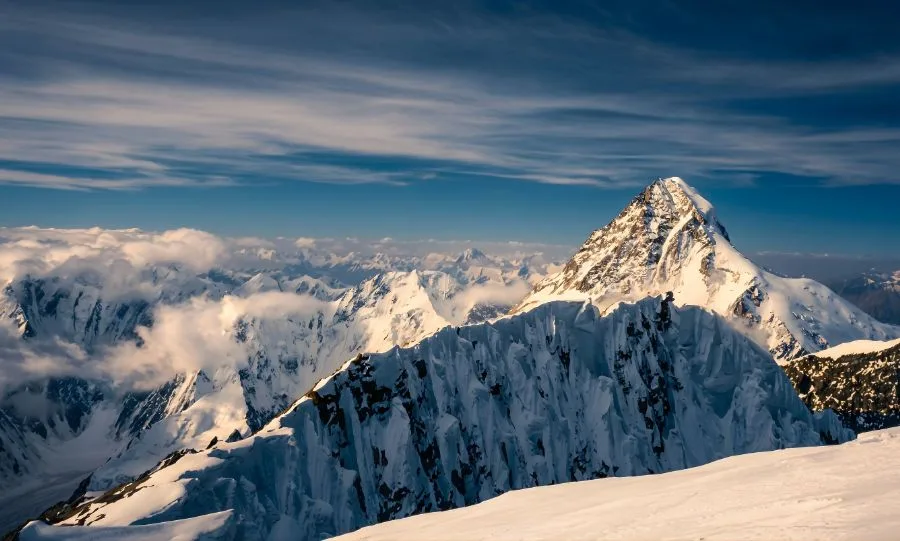 Broad Peak (8047m), aptly named for its immense and imposing bulk, is also locally known as Falchan Kangri. The mountain dominates its surroundings and offers one of the most breathtaking trekking and climbing experiences in the Karakoram.
