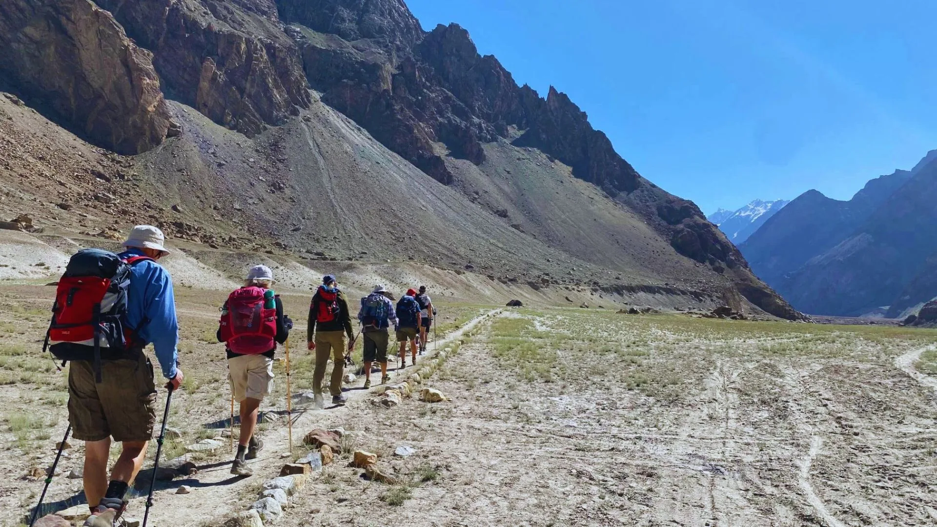 Descend through glaciers, flower-filled meadows, and yak pastures. Views of Masherbrum dominate the landscape.