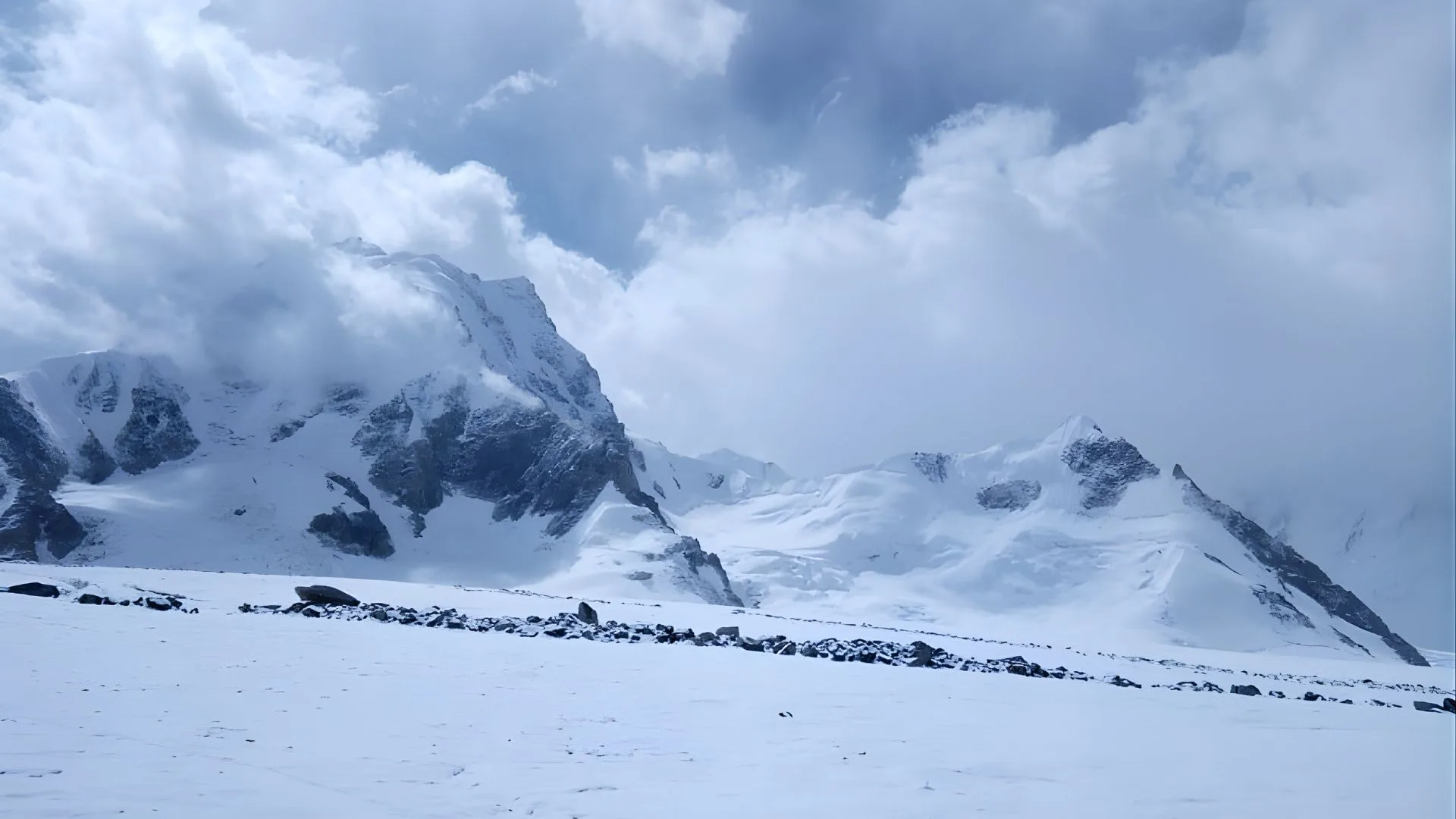 Early departure to cross soft snow on the medial moraine. Reach the intersection of Sim-gang Glacier and Snow Lake. Camp at ~4780m near Hispar Pass. (2–3 hours).