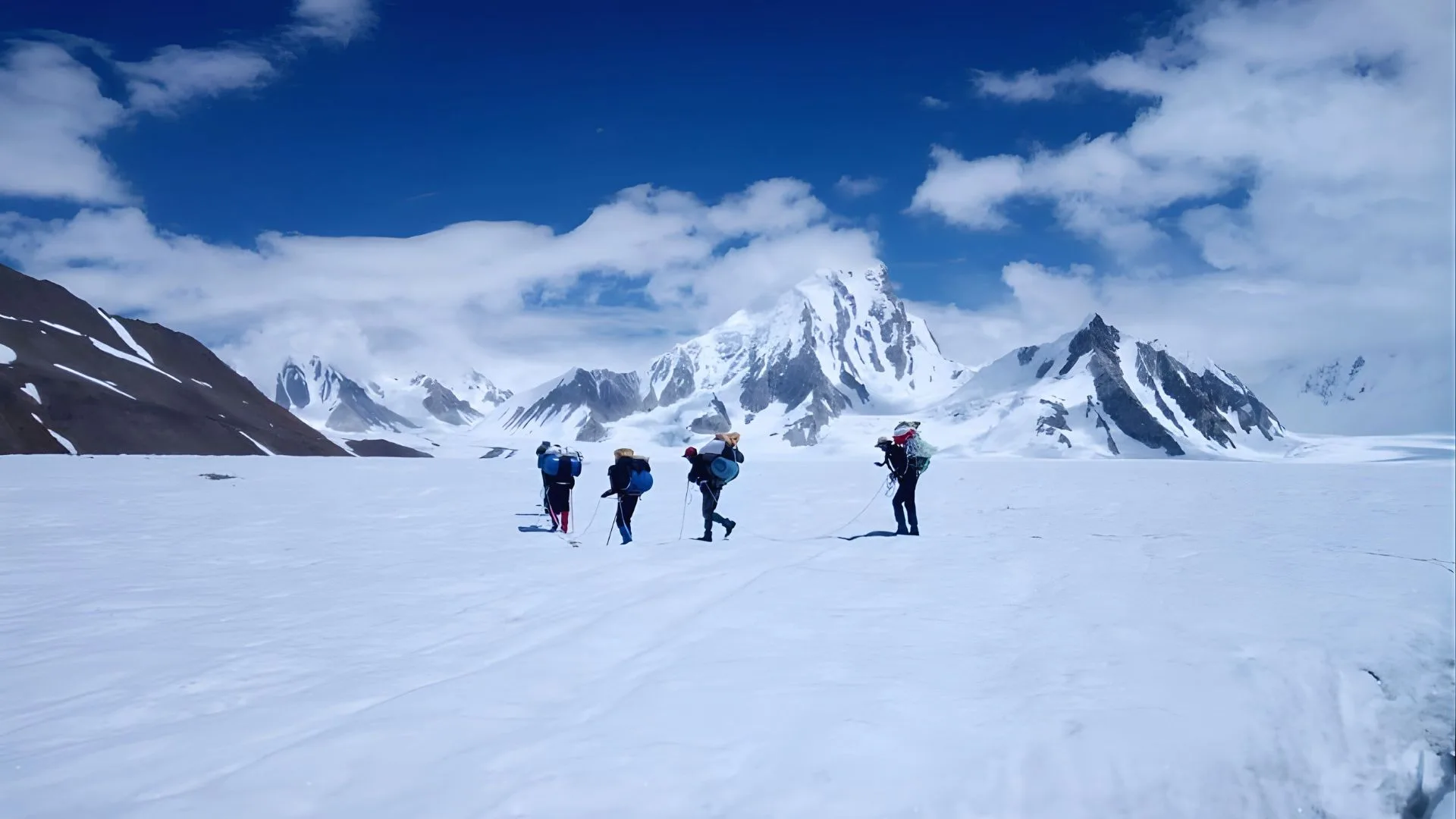 Climb the pass with gaiters, roped together for safety. View Snow Lake from Hispar Pass (5151m) and descend to the northern moraine of Hispar Glacier. Camp at 4580m (7–8 hours).